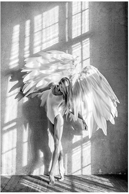 Amazon|絵黒と白の天使の翼の女の子のキャンバス絵画レトロなセクシーな美容ダンサー壁アート写真リビングルームの寝室の家の装飾50×75センチフレームなし|アートフレーム・ポスター オンライン通販