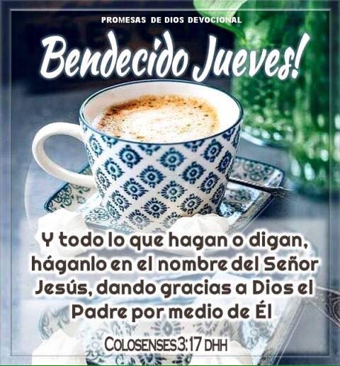 Loren Castillo på Twitter: "Bendecido Jueves, Gracias infinitas mi Dios por este grandioso dia, que todo lo que hagamos sea en el nombre del Señor…Colosenses 3:17 Y todo lo que hagan, de